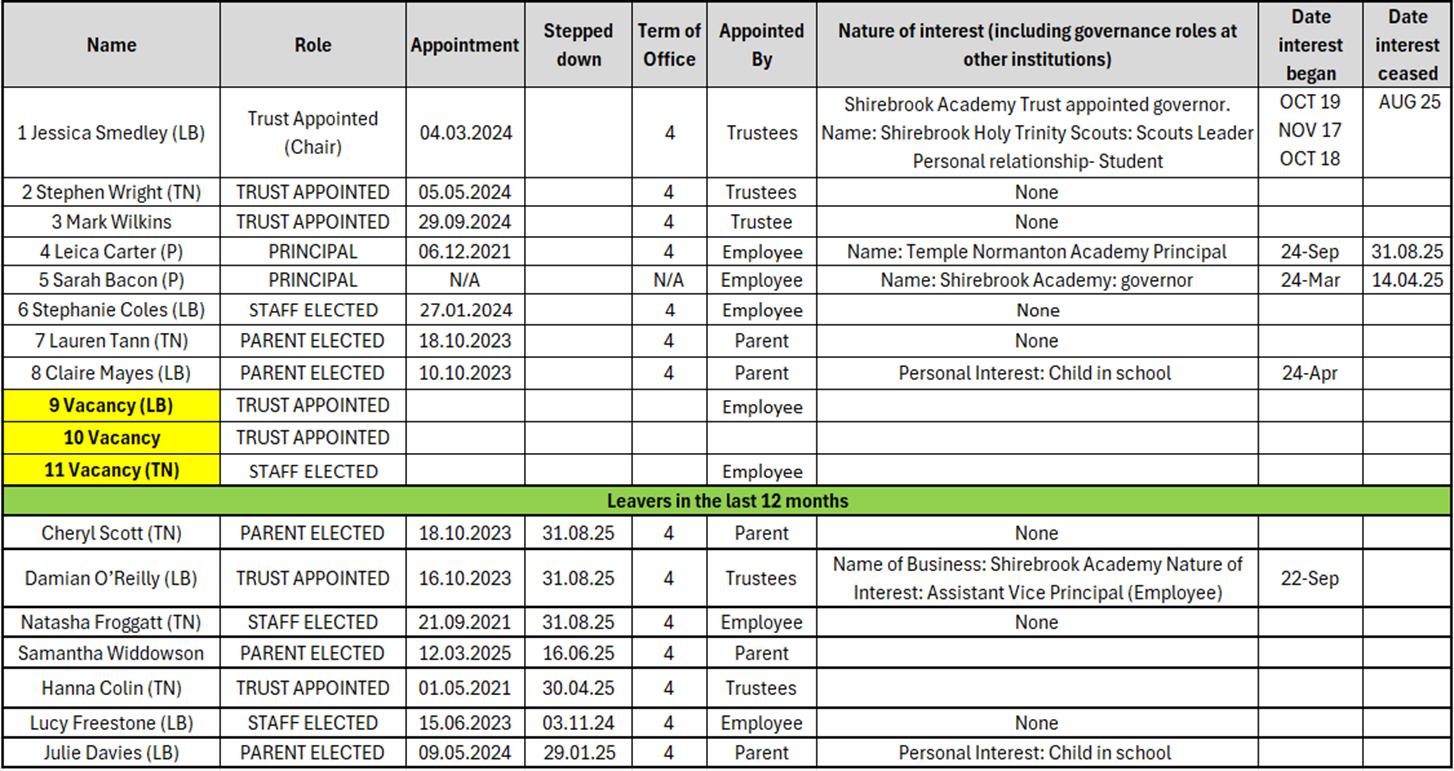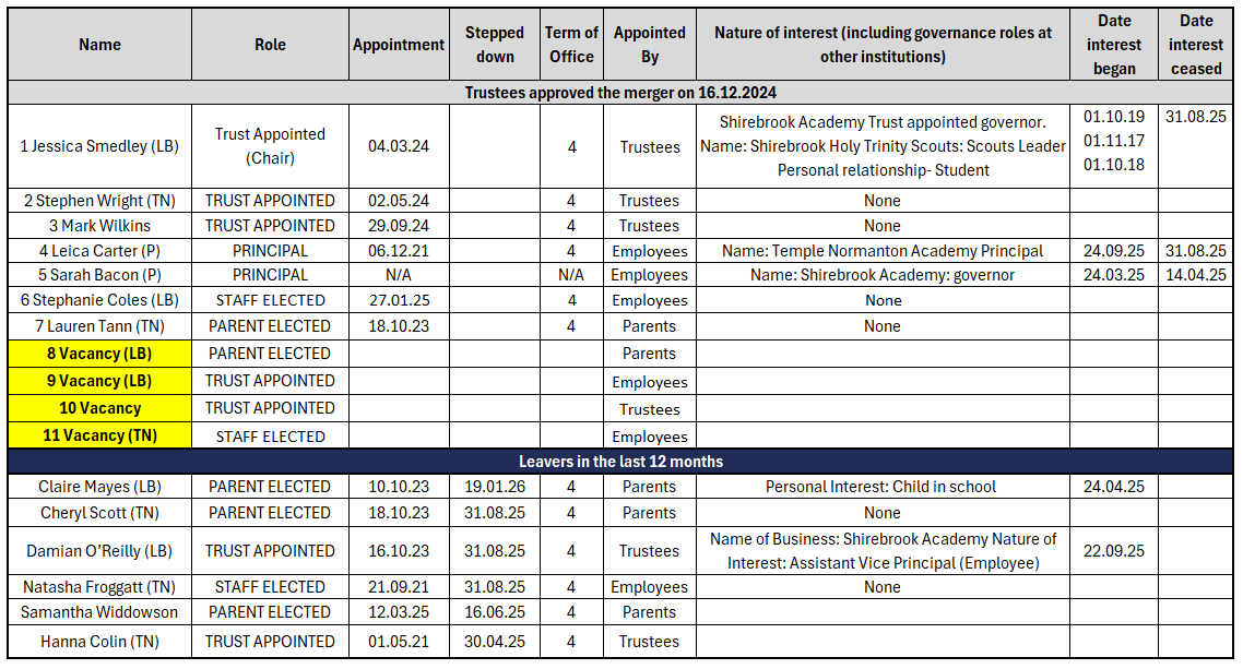In 2025 the ACET Board of Trustees made the decision to merge the Local Governing Bodies of Temple Normanton and Langwith Bassett Junior Academies. The resulting composition of the LGB is available below.
